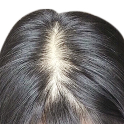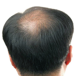 男性脂溢性脫髮,表現為頭頂脫髮稀疏,暴露頭皮,頭頂周圍毛髮正常,類似地中海。